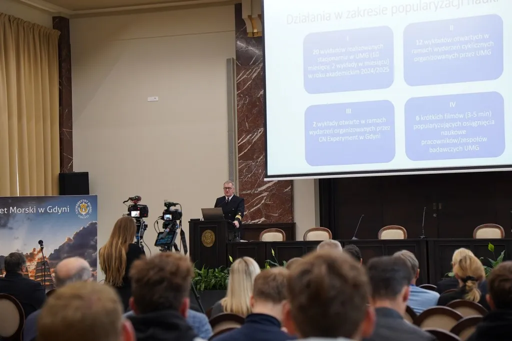 W dniu 5 listopada 2025 roku, w Uczelni uroczyście podsumowano działania, które w ciągu ostatnich dwóch lat prowadzono w ramach projektu „Lokalni Rzecznicy Nauki na Uniwersytecie Morskim w Gdyni” realizowanego w ramach programu MNiSW „Społeczna odpowiedzialność nauki II”. W wydarzeniu udział wzięli zaproszeni goście oraz licznie zgromadzona społeczność Uniwersytetu Morskiego w Gdyni, wśród których ważną część stanowili uczestnicy projektu.