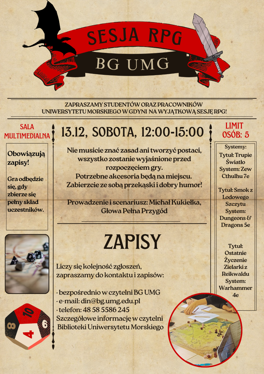Sesja RPG w BG UMG w dniu 13.12.2025, godz. 12:00 - 15:00