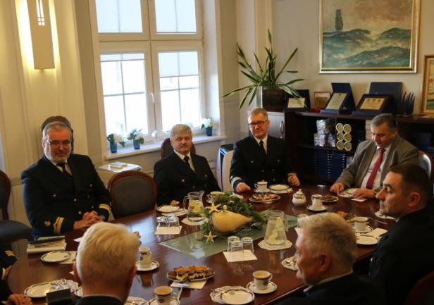 W spotkaniu ze strony Uczelni udział wzięli: JM Rektor prof. dr hab. inż. kpt. ż.w. Adam Weintrit, Prorektor ds. Nauki dr hab. Dariusz Barbucha, prof. UMG, Prorektor ds. Studenckich i Kształcenia dr hab. Sambor Guze, prof. UMG, Prorektor ds. Umiędzynarodowienia, Współpracy i Rozwoju prof. dr hab. inż. Tomasz Tarasiuk, Prodziekan ds. Morskich, Współpracy i Rozwoju dr inż. kpt .ż.w., prof. UMG Przemysław Wilczyński z Wydziału Nawigacyjnego, Prodziekan ds. Studenckich i Naukowych dr hab. inż. Robert Starosta, prof. UMG z Wydziału Mechanicznego, Prodziekan ds. Morskich i Studenckich dr inż. Andrzej Piłat, oraz Prodziekan ds. Kształcenia i Organizacji Studiów dr inż. Adam Muc z Wydziału Elektrycznego.
