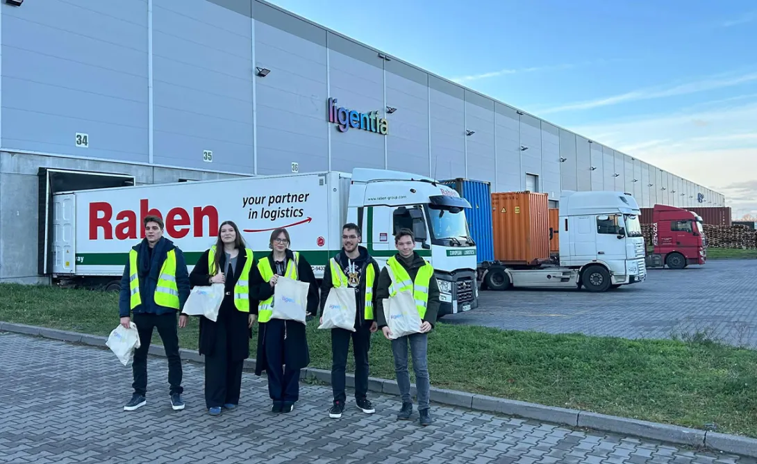 27 listopada 2025 roku kilku studentów z Koła Naukowego loGIStic miało przyjemność odwiedzić magazyn firmy Ligentia Poland Sp. z o.o.. Podczas wizyty mogli zobaczyć, jak wygląda codzienne funkcjonowanie obiektu, który stanowi ważny element systemu logistycznego stworzonego przez tę firmę. Studenci zostali również zapoznani z pełnym procesem realizacji zamówienia — od momentu jego złożenia, aż po przygotowanie towaru do odbioru przez kierowcę.