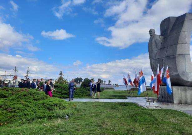 Władze Uniwersytetu Morskiego w Gdyni reprezentował Prorektor ds. Studenckich i Kształcenia dr hab. Sambor Guze, prof. UMG, który wraz z delegacją studentów z Kompanii Reprezentacyjnej złożył kwiaty pod pomnikiem pisarza.