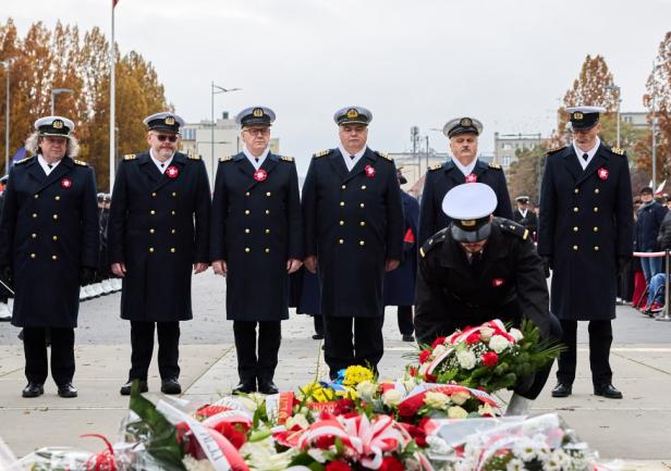 Z ramienia Uniwersytetu Morskiego w Gdyni, w asyście kompanii reprezentacyjnej, kwiaty pod Pomnikiem Polski Morskiej złożyli: JM Rektor prof. dr hab. inż. kpt. ż.w. Adam Weintrit, Prorektor ds. Współpracy i Rozwoju prof. dr hab. inż. Tomasz Tarasiuk, Prorektor ds. Nauki dr hab. Dariusz Barbucha, prof. UMG, Prorektor ds. Studenckich i Kształcenia dr hab. Sambor Guze, prof. UMG, Kanclerz mgr Filip Malata oraz Dyrektor Działu Armatorskiego i Praktyk Morskich mgr inż. kpt. ż.w. Dariusz Jellonnek.