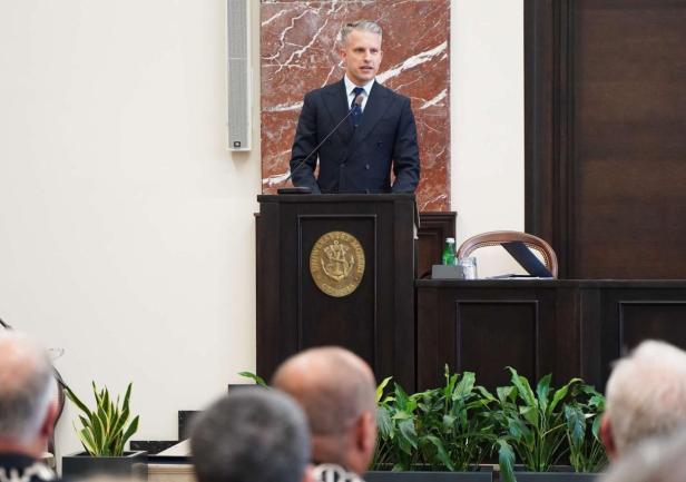 To, co wydarzyło się w 1920 roku, utorowało drogę do dalszych sukcesów naszej gospodarki morskiej. […] Uczelnia kształci wybitnych fachowców, którzy są naszą wizytówką na całym świecie. W Ministerstwie Infrastruktury mamy świadomość, że inwestycja w naukę i inwestycja w edukację to najlepsza inwestycja, dlatego podjęliśmy decyzję o budowie o następcy „Daru Młodzieży” dla Uczelni. Panie Rektorze, dziękuję za te ostatnie miesiące konstruktywnej współpracy. Ta zapowiedź Pana Premiera budowy, która padła podczas Kongresu Morskiego, jest niezwykle istotnym krokiem, abyśmy mogli kontynuować tradycję edukacji morskiej, mając nowy żaglowiec, który przez kolejne dziesiątki lat będzie ambasadorem Polski. [..] Przed nami szereg działań związanych z formalnościami, ale decyzja zapadła.