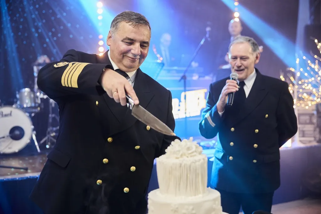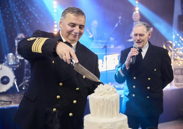 Na niecałą godzinę przed północą gości czekała słodka niespodzianka - na salę wjechał tort, którego pierwszy kawałek ukroił JM Rektor. Następnie wybrano najbardziej roztańczoną parę Tradycyjnego Jubileuszowego Balu Morskiego Uniwersytetu Morskiego w Gdyni. Szampańska zabawa trwała do białego rana, a jego uczestnicy, opuszczając mury Uczelni, deklarowali chęć udziału w następnym Balu Morskim.