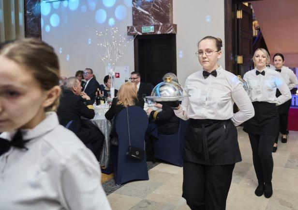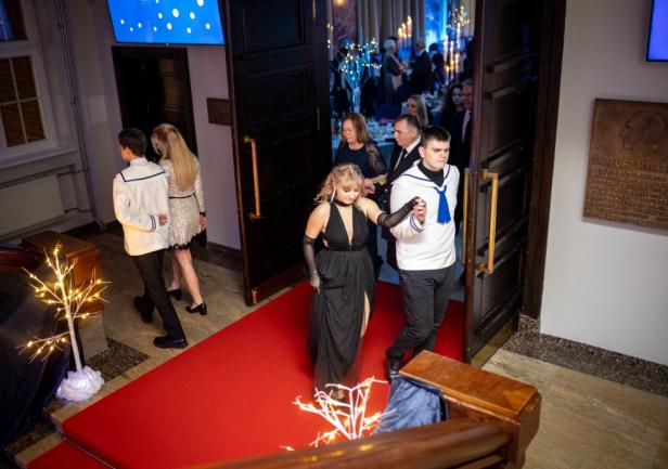 Przybyłych na bal gości witał wraz z małżonką JM Rektor prof. dr hab. inż. kpt. ż.w. Adam Weintrit, zapraszając do wspólnego, pamiątkowego zdjęcia na tle ścianki, swoją scenerią nawiązującą do baśniowej krainy lodu. Następnie, studenci Uczelni prowadzili gości do stolików, które w tym roku nosiły imiona znanych żeglarzy i odkrywców geograficznych, m.in. Krzysztofa Kolumba, Vasco da Gamy czy Ferdynanda Magellana.