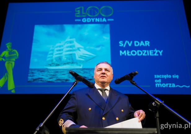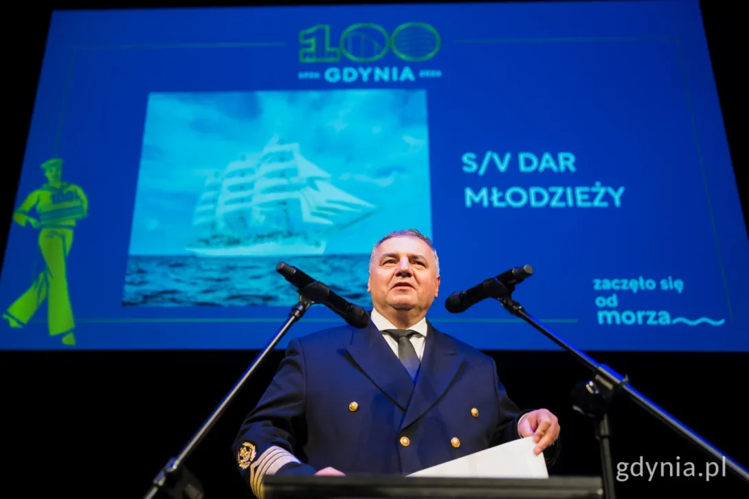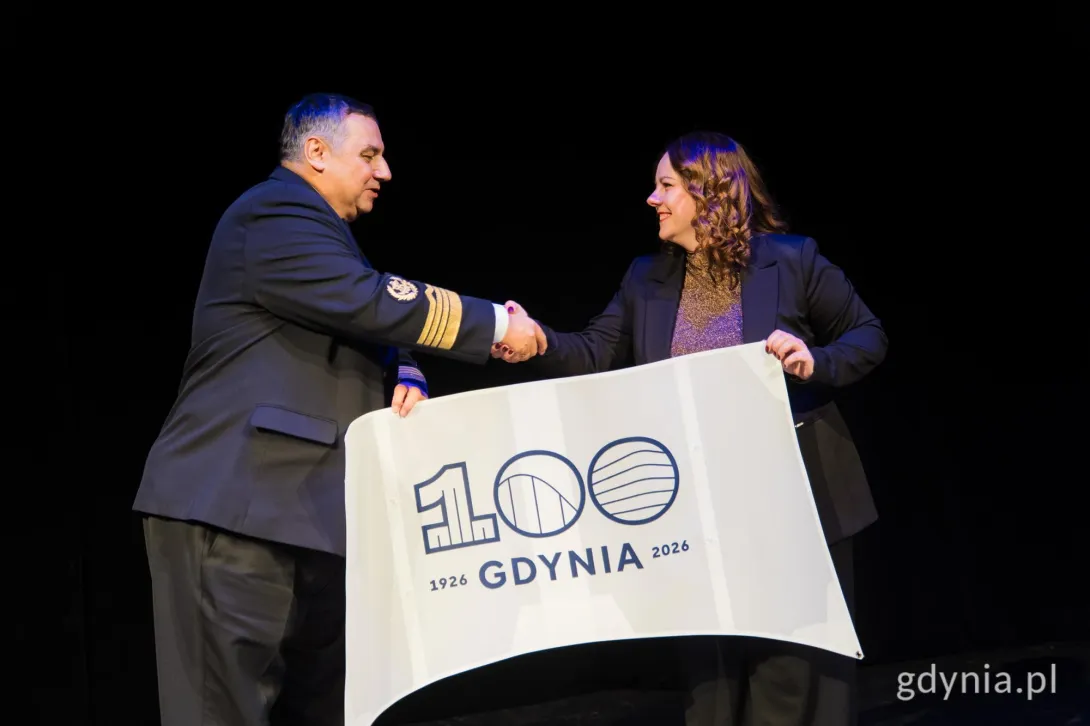 Podczas konferencji, która odbyła się w gdyńskim Teatrze Muzycznym im. M. Baduszkowej, w ramach zapowiedzi jubileuszu JM Rektor prof. Adam Weintrit z rąk prezydent Gdyni Aleksandry Kosiorek oraz przewodniczącego Rady Miasta Gdyni Tadeusza Szemiota odebrał symboliczne żagle stulecia Gdyni, które w 2026 roku prezentowane będą podczas rejsów szkoleniowych na „Darze Młodzieży”. W konferencji prasowej z ramienia Uczelni uczestniczył także Dyrektor Działu Armatorskiego i Praktyk Morskich mgr inż. kpt. ż.w. Dariusz Jellonnek.