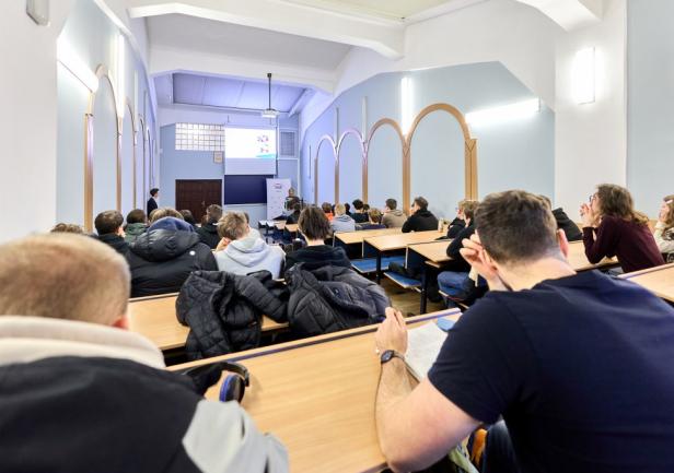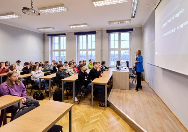 Centralnym punktem spotkań była aula, w której przygotowano stanowiska wydziałowe. Tam kandydaci mogli porozmawiać z wykładowcami, studentami i pracownikami Uczelni, uzyskać odpowiedzi na pytania dotyczące rekrutacji oraz zaplanować swoją przyszłą ścieżkę edukacyjną.