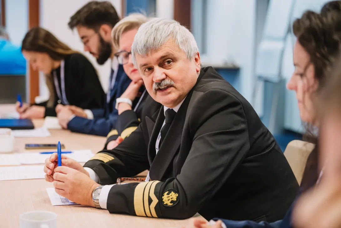 Prorektor Tomasz Tarasiuk wraz z prezesem Fundacji Interizon Jarosławem Parzuchowskim pełnili rolę moderatorów stolika w obszarze morskich innowacji dla autonomicznych jednostek pływających, systemów monitoringu oraz technologii wspierających infrastrukturę portową i offshore.