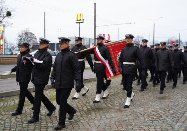 Uroczystość zakończyło odprowadzenie sztandaru Uniwersytetu Morskiego w Gdyni przez Kompanię Reprezentacyjną UMG oraz Orkiestrę Morskiego Oddziału Straży Granicznej.