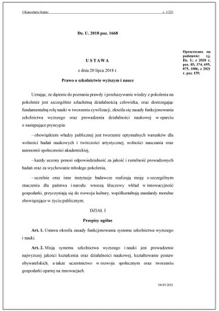 Uniwersytet Morski w Gdyni, będąc akademicką uczelnią publiczną, działa na podstawie ustawy z dnia 20 lipca 2018 roku – Prawo o szkolnictwie wyższym i nauce (Dz. U. 2018 poz. 1668) oraz statutu UMG.