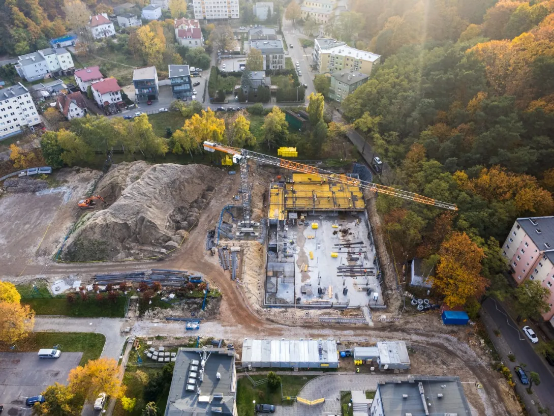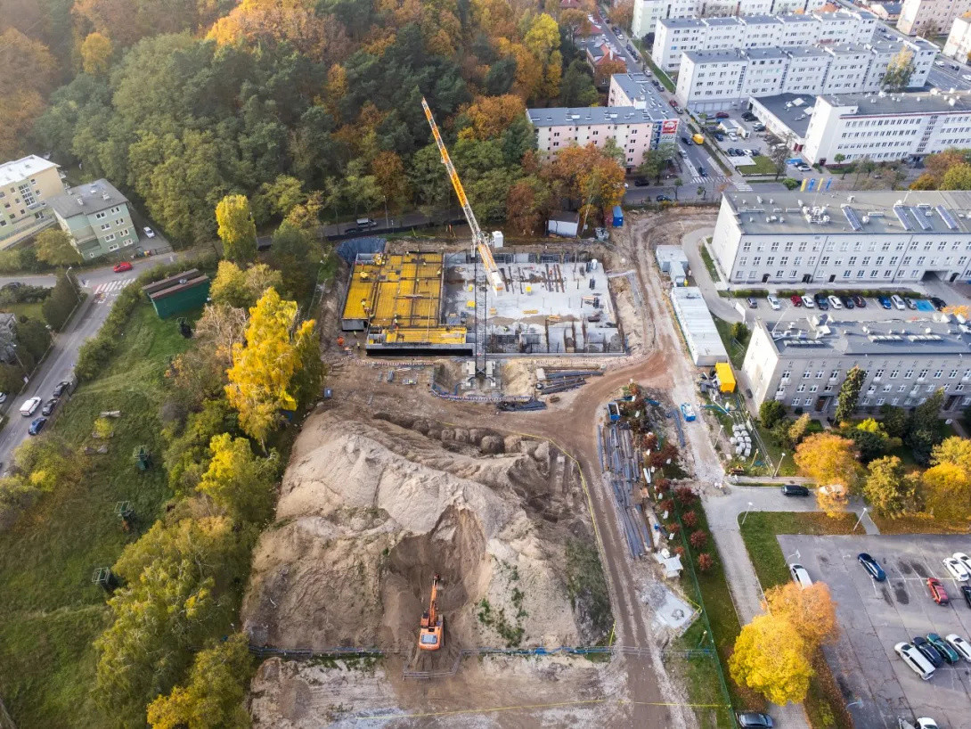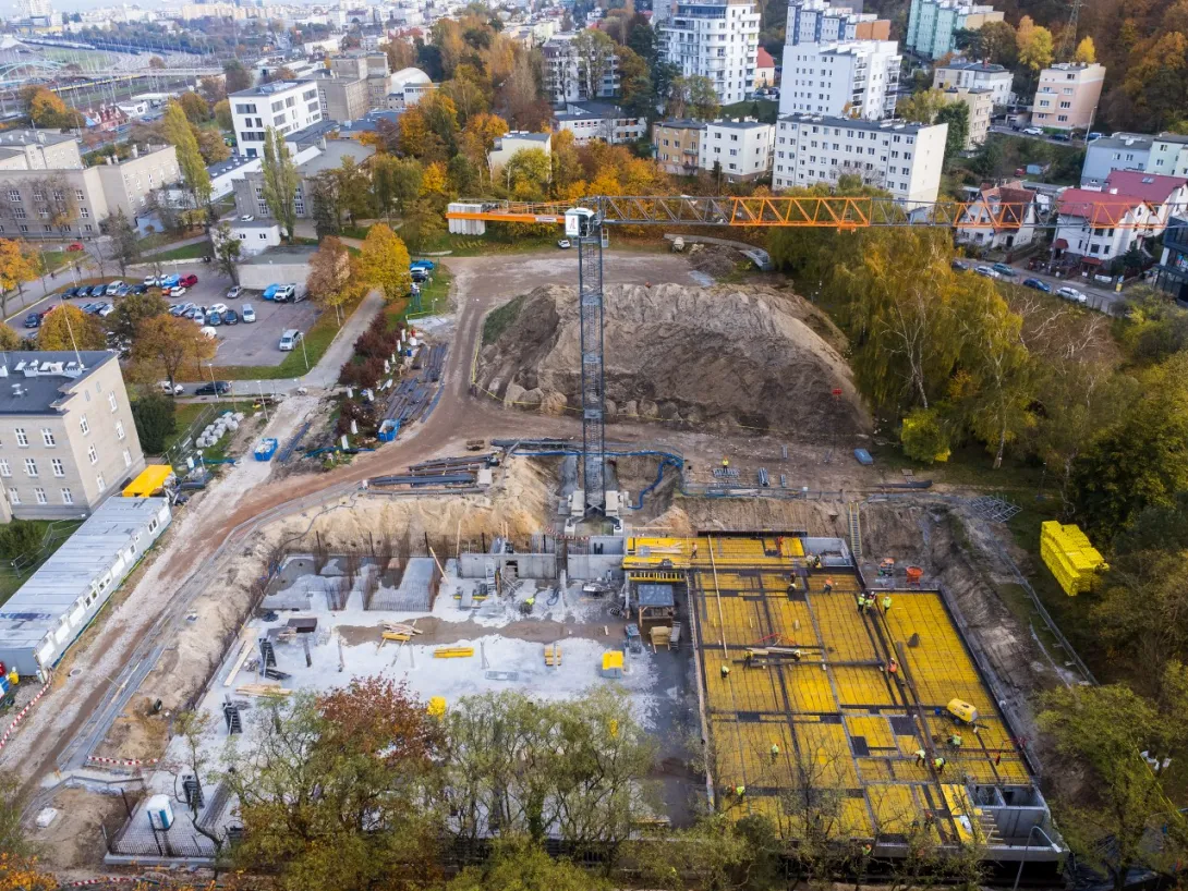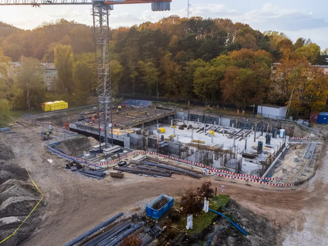 - wykonano betonowanie części stropu nad halą garażową, aktualnie wykonywane jest zbrojenie dalszej części stropu (wykonanie całego stopu nad halą garażową jest zaplanowane do końca listopada 2022 r.);
