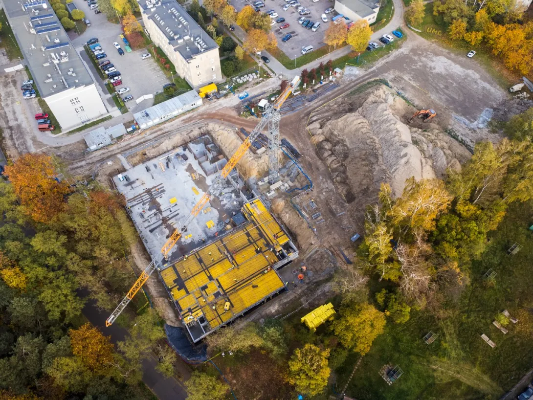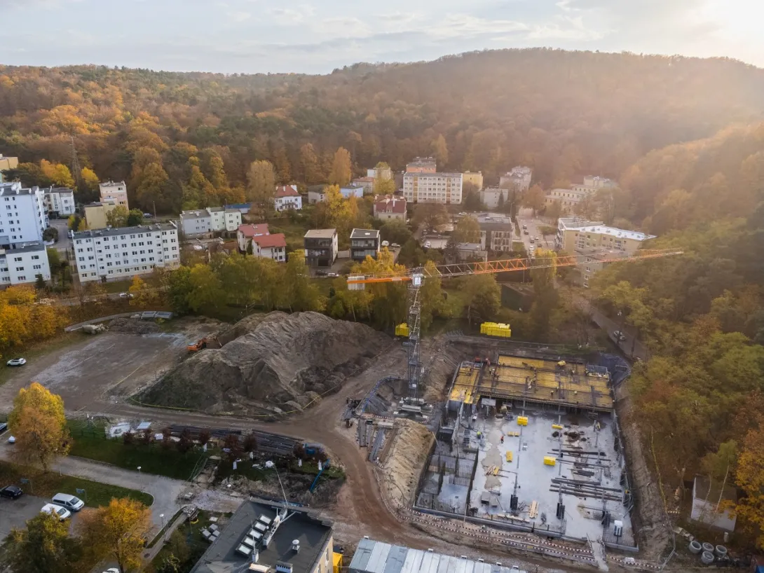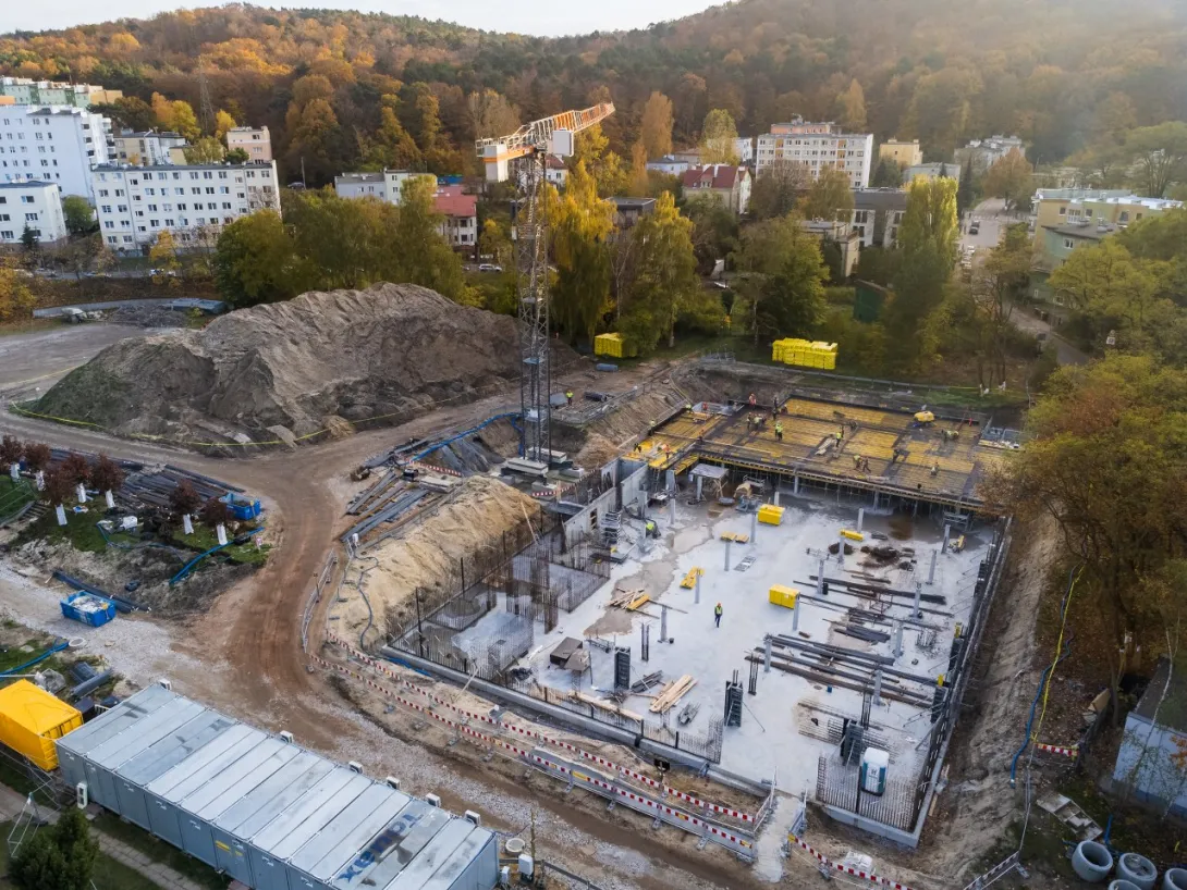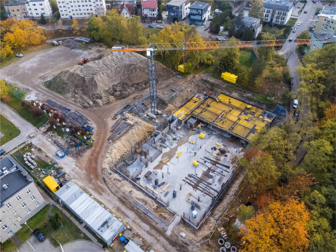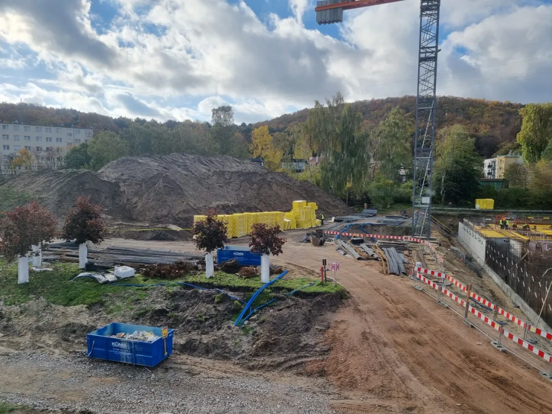 - wykonano betonowanie części stropu nad halą garażową, aktualnie wykonywane jest zbrojenie dalszej części stropu (wykonanie całego stopu nad halą garażową jest zaplanowane do końca listopada 2022 r.);