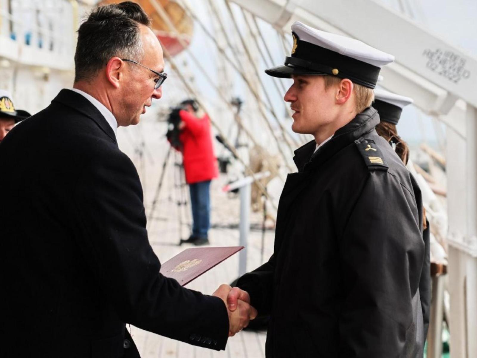 The ceremonial matriculation was accompanied by the sound of the Border Guard Maritime Division Orchestra performing the piece 'Pod żaglami Zawiszy' [Beneath the Sails of the Zawisza].