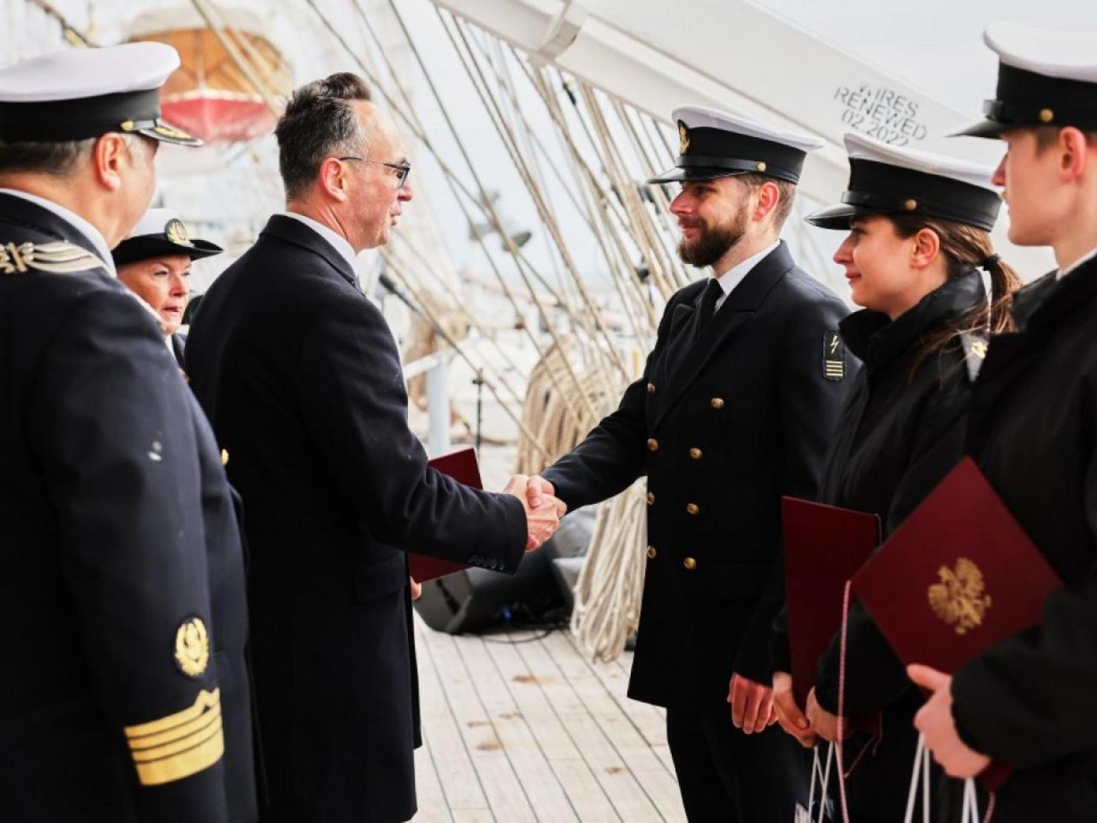 The Minister of Infrastructure, in the company of the Rector of Gdynia Maritime University, also presented awards for the best marine-specialisation students at Gdynia Maritime University.