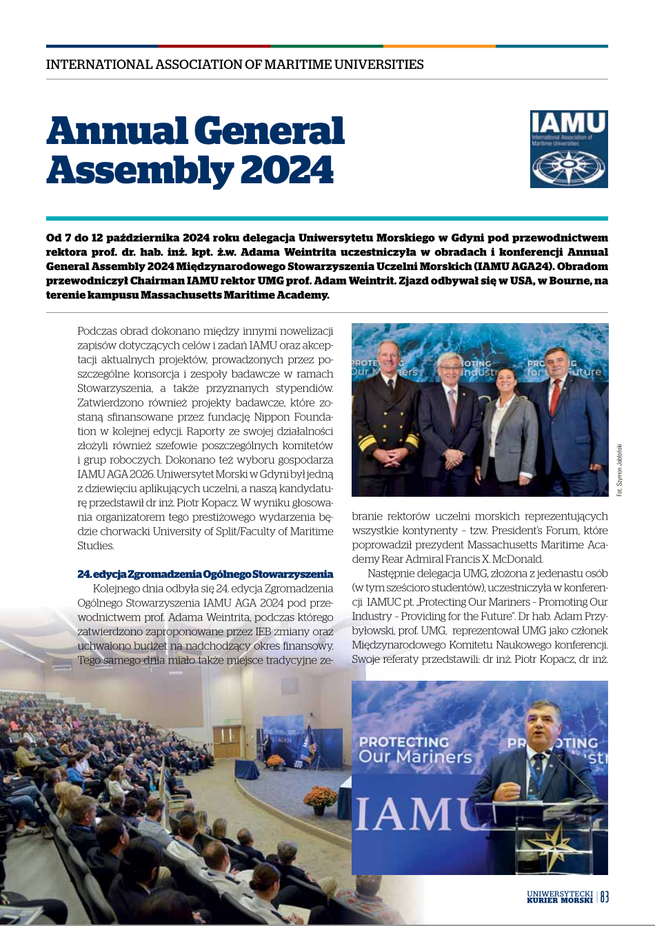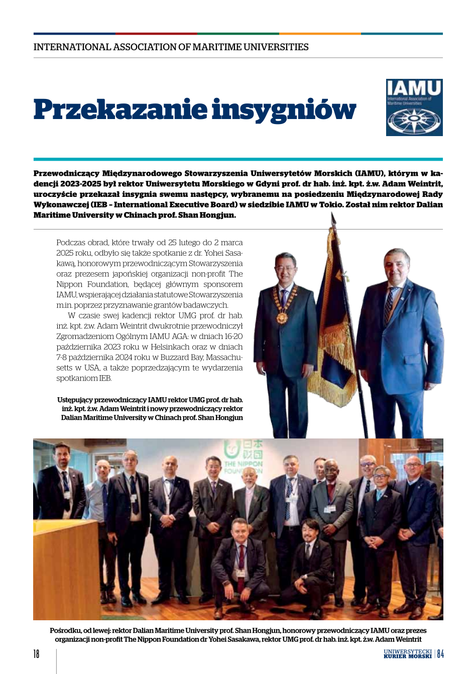 Rektor prof. dr hab. inż. kpt. ż.w. Adam Weintrit zakończył kadencję przewodniczącego Międzynarodowego Stowarzyszenia Uczelni Morskich