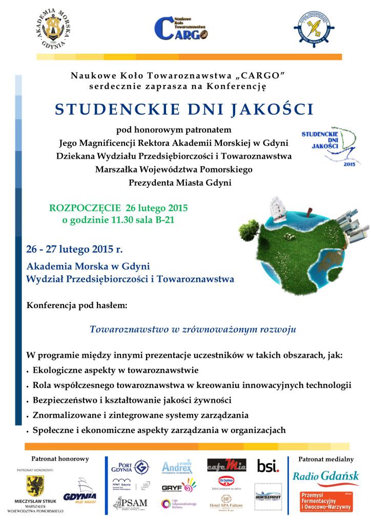 Naukowe Koło Towaroznawstwa „Cargo” zaprasza na IV Konferencję z cyklu STUDNCKIE DNI JAOŚCI pod honorowym patronatem