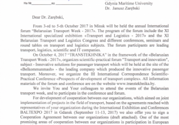 Serdecznie zapraszamy do udziału w forum międzynarodowym "Belarussian Transport Week - 2017", odbywającym się w dniach 3 - 5.10.2017 w Mińsku, na Białorusi.