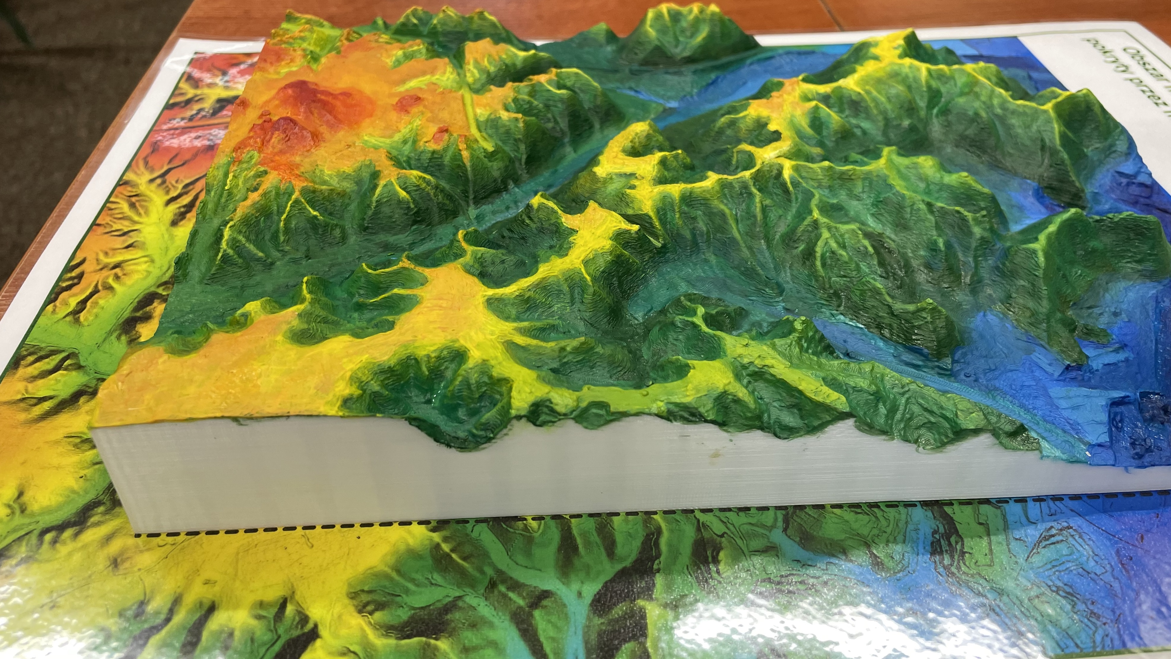 Model terenu (pomalowany wydruk 3D) od poziomu morza, skala 1:10 000 - Chylonia