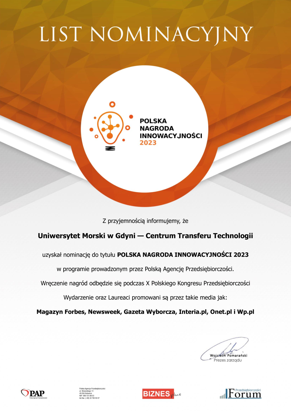 Więcej na ten temat: CENTRUM TRANSFERU TECHNOLOGII UMG Z NAGRODĄ INNOWACYJNOŚCI 2023 NA X POLSKIM KONGRESIE PRZEDSIĘBIORCZOŚCI | Uniwersytet Morski w Gdyni