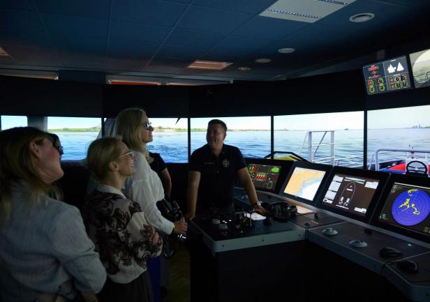 Spotkanie przedstawicieli partnerów konsorcjum na UMG zakończyło się zwiedzaniem symulatora mostka nawigacyjnego i pokazem w Planetarium im. A. Ledóchowskiego na Wydziale Nawigacyjnym.